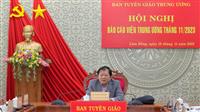 Sáng 16/11, Ban Tuyên giáo Trung ương tổ chức Hội nghị Báo cáo viên Trung ương tháng 11/2023 bằng hình thức trực tuyến tới hơn 1.500 điểm cầu trên cả nước với tổng số trên 50.000 đại biểu tham dự để cung cấp thông tin cho đội ngũ báo cáo viên các cấp và định hướng tuyên truyền trong thời gian tới. Đồng chí Phan Xuân Thủy - Phó Trưởng Ban Tuyên giáo Trung ương chủ trì hội nghị. Xem thêm