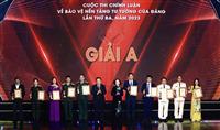 Tối 22/10, Lễ trao giải Cuộc thi Chính luận về bảo vệ nền tảng tư tưởng của Đảng lần thứ 3 năm 2023 diễn ra tại Hà Nội. Cuộc thi do Ban Chỉ đạo 35 Trung ương chỉ đạo, phân công Học viện Chính trị quốc gia Hồ Chí Minh chủ trì, phối hợp với Ban Tuyên giáo Trung ương, Hội đồng Lý luận Trung ương, Báo Nhân dân, Tạp chí Cộng sản, Đài Truyền hình Việt Nam và Hội Nhà báo Việt Nam tổ chức. Xem thêm