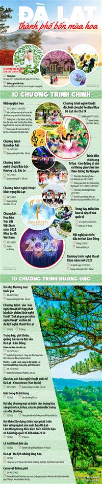 Festival Hoa Đà Lạt lần thứ IX năm 2022 sẽ được tổ chức thành chuỗi các sự kiện đặc sắc xuyên suốt trong năm 2022, tập trung vào tháng 11 và 12 với các chương trình, sự kiện nổi bật, góp phần đẩy mạnh kích cầu du lịch và nâng cao chất lượng đời sống tinh thần cho du khách và người dân địa phương. Xem thêm