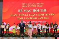 Sáng ngày 16/6, tại Hội trường Tỉnh ủy, Ban Tuyên giáo Tỉnh ủy Lâm Đồng tổ chức Hội thi giảng viên lý luận chính trị giỏi tỉnh Lâm Đồng năm 2022, với sự tham gia của 14 thí sinh các Trung tâm Chính trị của 10 huyện, thành phố Bảo Lộc và thành phố Đà Lạt. Xem thêm