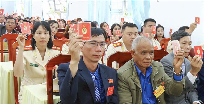 Các đại biểu biểu quyết thông qua Nghị quyết Đại hội đại biểu Đảng bộ xã nhiệm kỳ 2025 - 2030