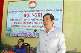 Sáng 5/3, tại xã Lương Sơn, Ủy ban MTTQ Việt Nam tỉnh Lâm Đồng đã tổ chức Hội nghị tiếp xúc cử tri với người ứng cử đại biểu HĐND tỉnh - Đơn vị bầu cử số 23.